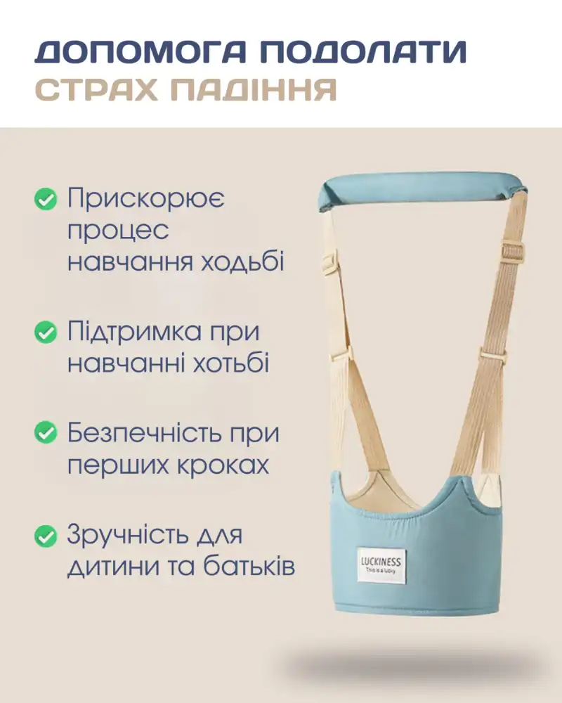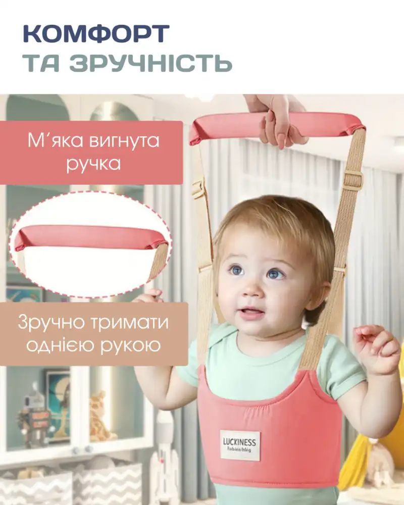 Ваш помічник під час навчання дитини ходьби від перших кроків до повної самостійності. Допомагають забезпечити безпеку дитині та здоров'я спині батькам.